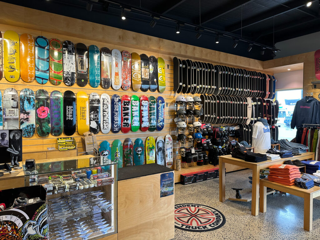 Pushing creative boundaries, the store’s daring display techniques—like helmets showcased on skulls—add an unmistakable edge to the brand identity. Unexpected contrasts, such as Persian rugs laid over polished concrete floors, inject personality and texture without distracting from the core retail focus. Every design element is carefully curated to reflect attitude, authenticity, and the rebellious spirit of skateboarding.
